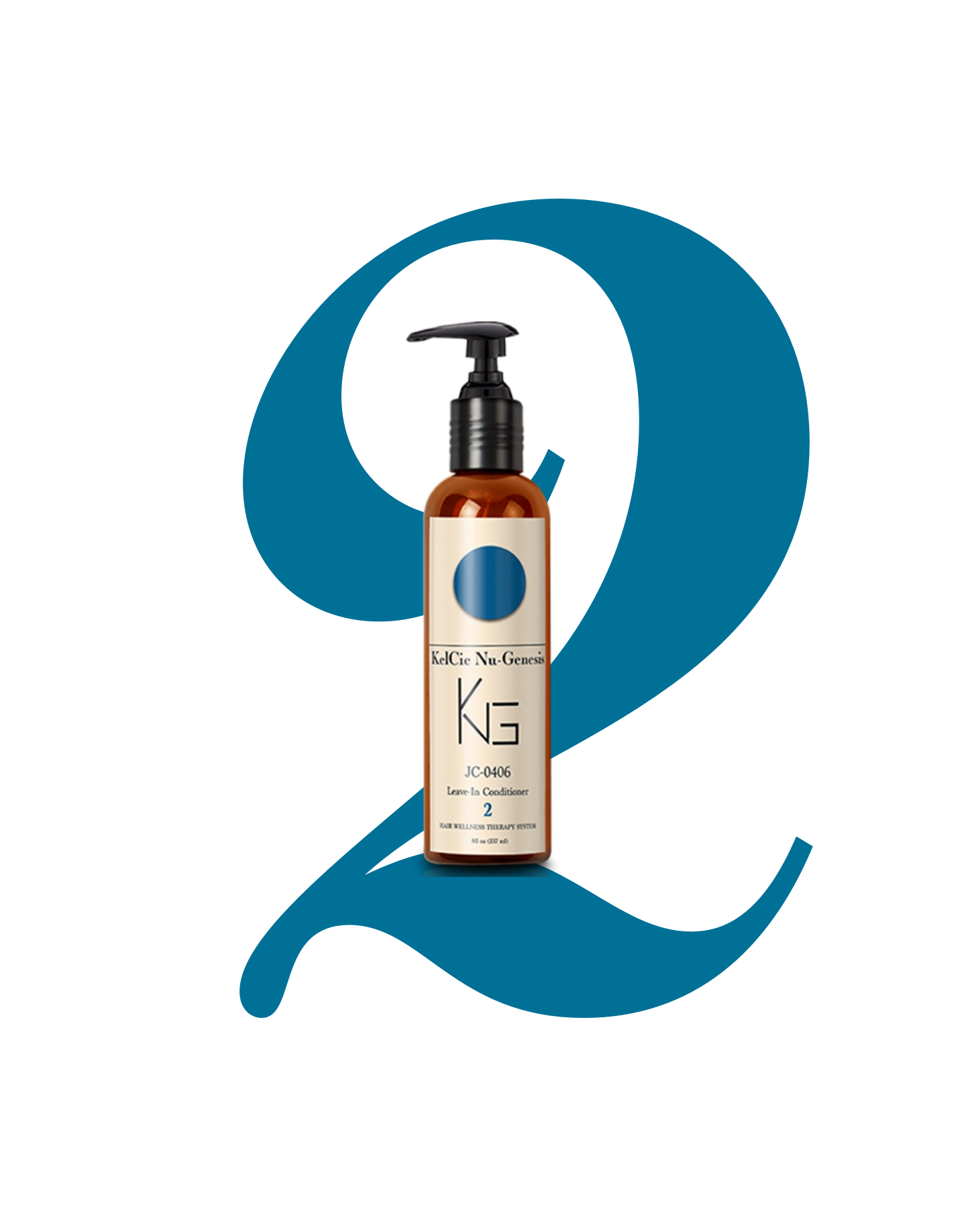 Finger-comb approximately a Quarter (Coin Size) or more of Leave-In-Conditioner JC-0406 to each section of hair already treated with Spritzer to coat hair strands for maximum moisture and aid in detangling.
