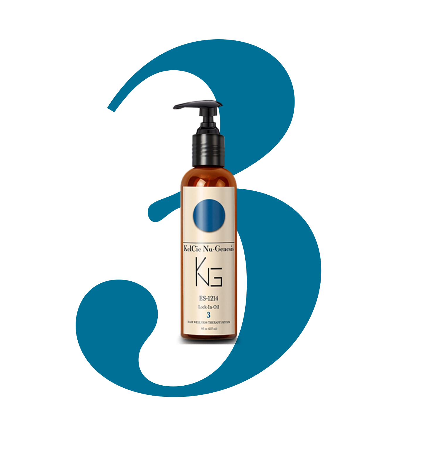 Finger-comb approximately a Quarter (Coin Size) or more of the Lock-In-Oil to each section of hair Pre-treated with Spritzer and Leave-In-Conditioner to Seal-in the ultimate moisture of Step 1 and Step 2.