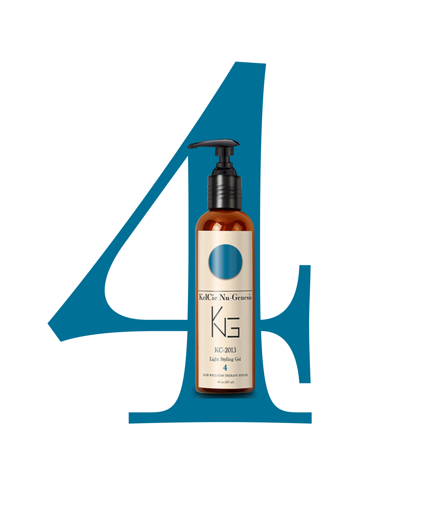 Finger-combs approximately a Quarter (Coin Size) or more of the Light Styling Gel to each section of hair, pre-treated with Spritzer, Leave-In-Conditioner, Lock-In-Oil, to ensure an easy hold, or less can be applied to just ends for lighter hold.
